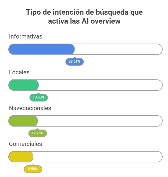 De todas las activaciones de AI Overviews las búsquedas informativas representan el 38,61% . Gemini en búsquedas prioriza contenido que responde preguntas específicas con autoridad demostrable.